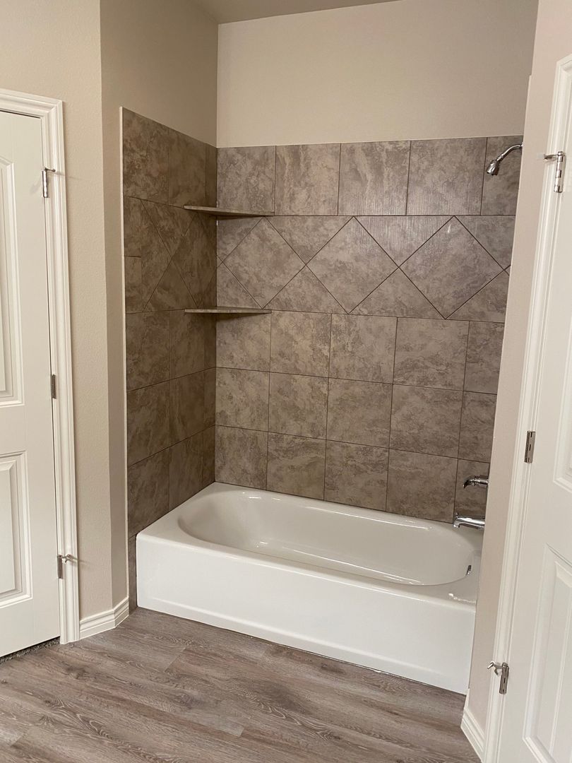 - Master Bathroom has his/her walk in closets, tiled shower with bathtub and granite counter top along with vinyl plank flooring