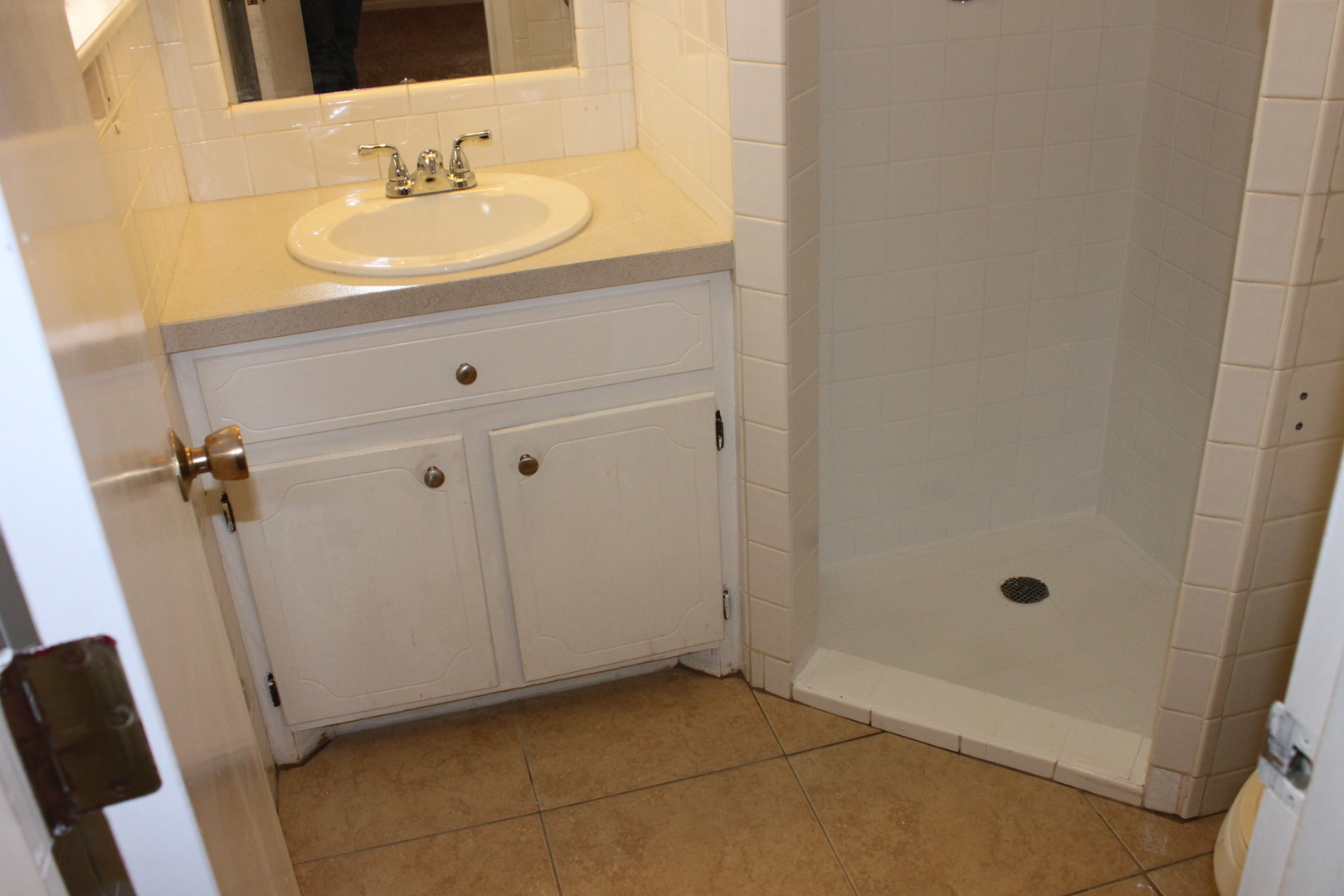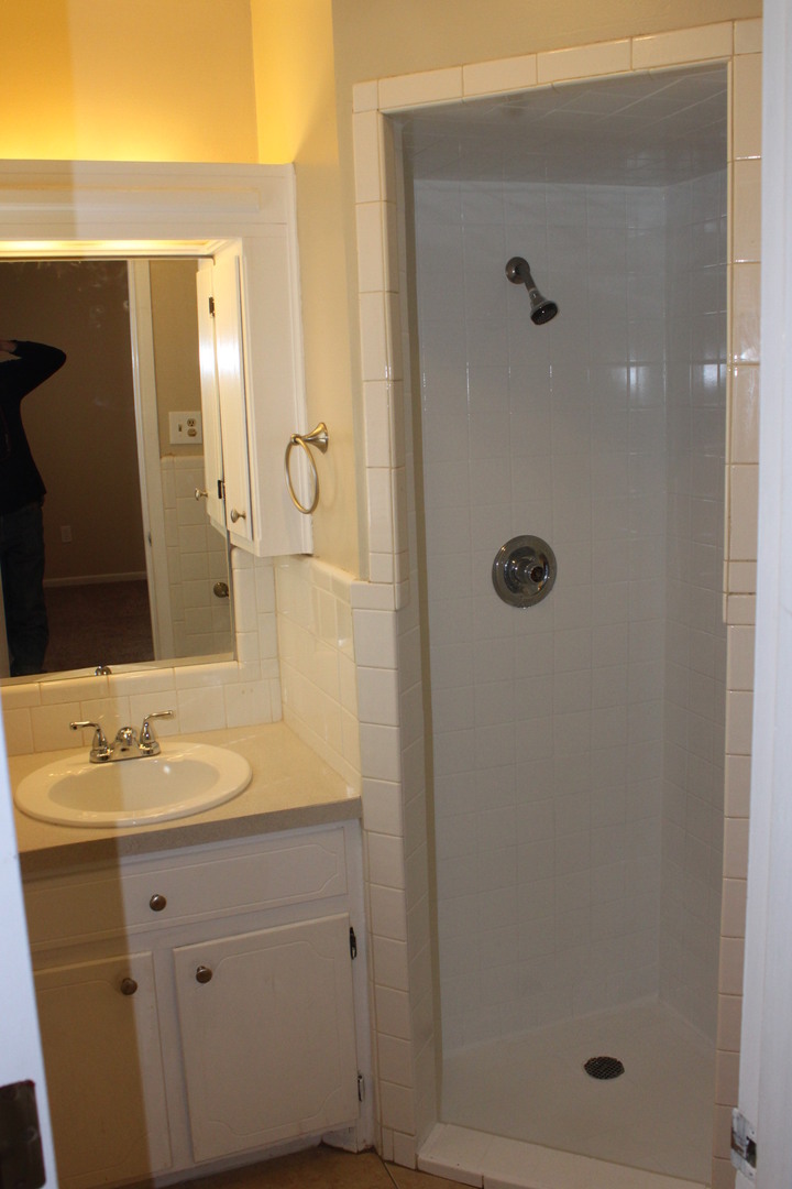 Master Bath has tiled floors and a tiled walk-in shower