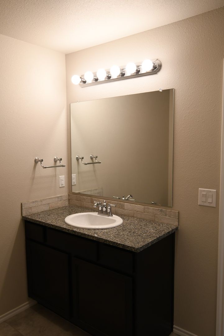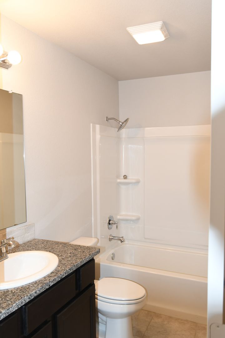 - Master bathroom which has single vanity, granite counter top, and tub/shower combo
